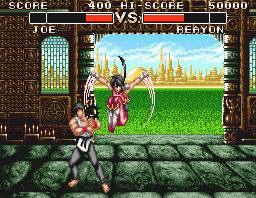 しかし、ゲームとしての評価は厳しいものになります。見た目は普通の格闘ゲームなのですが、中身は育成重視の格闘家育成ゲーム。1Pモードにおいては、主人公のジョー(JOE)しか扱うことが出来ず、ひたすら闘いを繰り返してキャラを育てます。パワー系に勝つとパワーが、スピード系に勝つとスピードが、という具合で、徐々に能力が上がっていきます。育てたキャラデータはパスワード形式で保存できます。